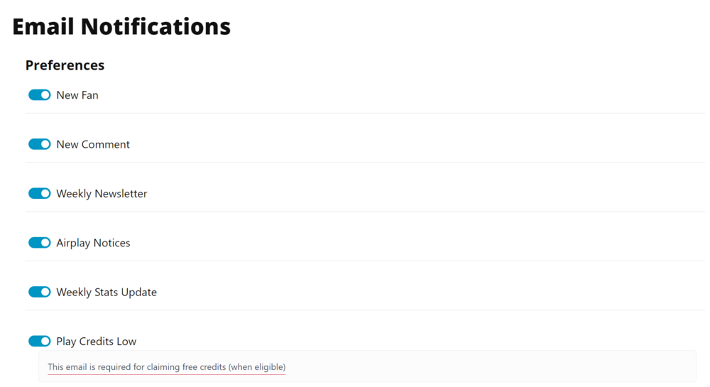Take control of your email updates by customizing your notification preferences on this page. Navigate to the Notifications page by selecting NOTIFICATIONS under the SETTINGS options in the main airplay menu (☰). Toggle each specific notification to suit your preferences seamlessly.